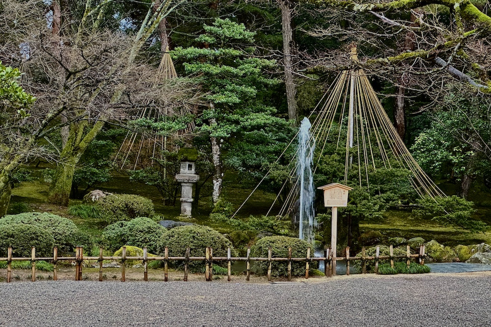 Staff will escort you to the Kenroku Pavilion 'Lotus Pond Pavilion'. Please wait and watch the fountain.